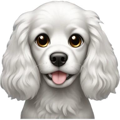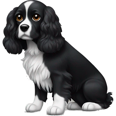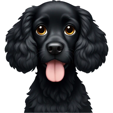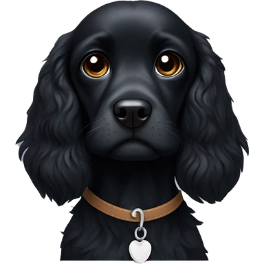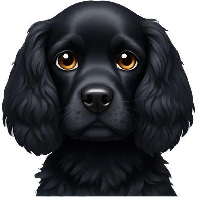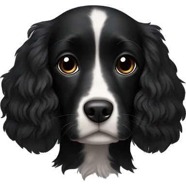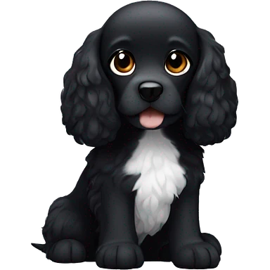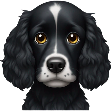 Small completely black spaniel with black fur on his whole face and white fur only on his chest emoji | AI Emoji Generator