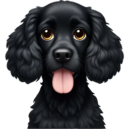 Small completely black spaniel with black fur on his whole face and white fur only on his chest emoji | AI Emoji Generator