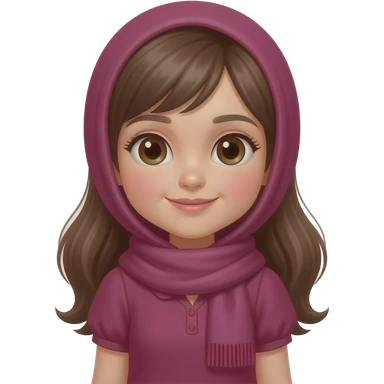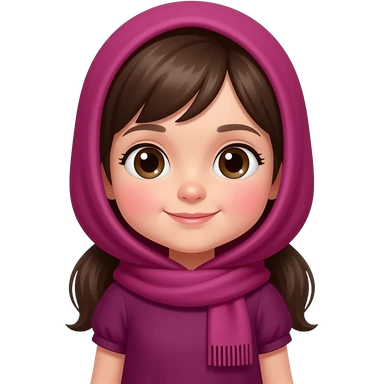 Small cute girl In dark pink dress with same scarf on her head covering her hair emoji