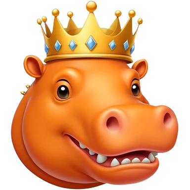 A purple hippo head with a crown and nice smile, head tilted & a wink emoji
