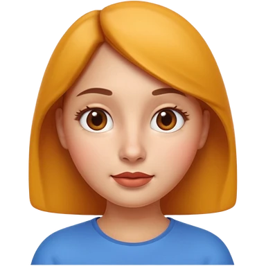 Cute female character, rounded face, big eyes, small nose, expressive mouth, long straight hair, blue dress emoji