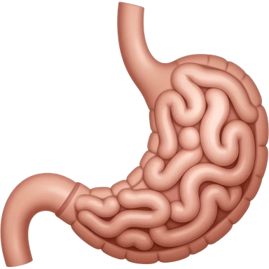the intestines of a dog from a ventral view. Include the small intestine coiled in the middle, the large intestine connected to it, and the colon running down the left side. Make sure the positions are realistic emoji