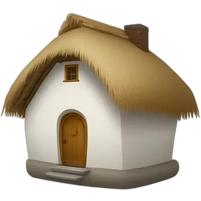 small white cabin with red half-timbering and thatched roof emoji