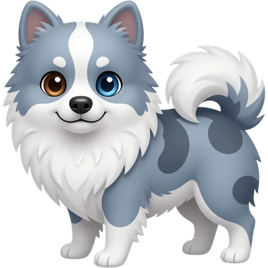 Blue merle Pomeranian with one blue and one brown eye emoji