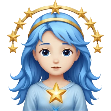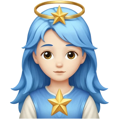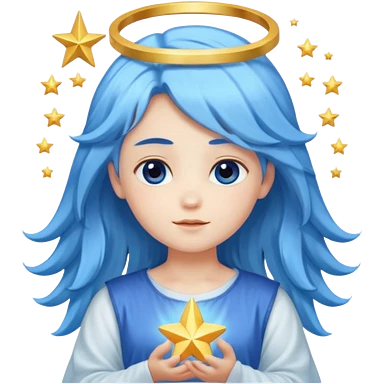 A soft-faced angel with flowing blue hair and glowing halo, holding a small star. emoji