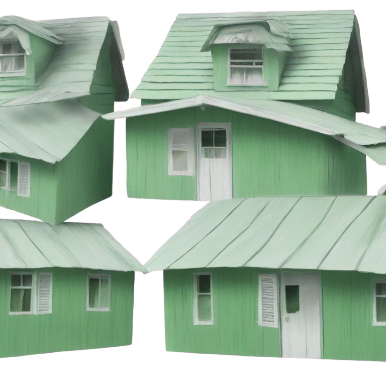 Small pink shack green shutters white roof emoji | AI Emoji Generator