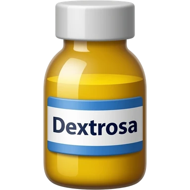 create me an image of a medice small bottle of yellow color with the name "dextrosa" on the label emoji