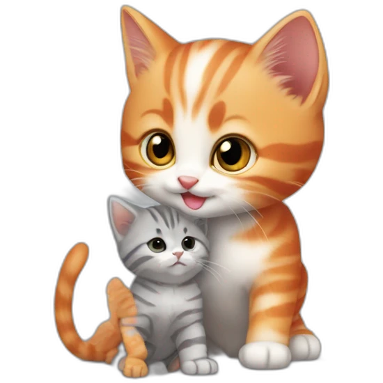 'small red kitten' playing with 'bigger grey striped kitten' emoji | AI Emoji Generator