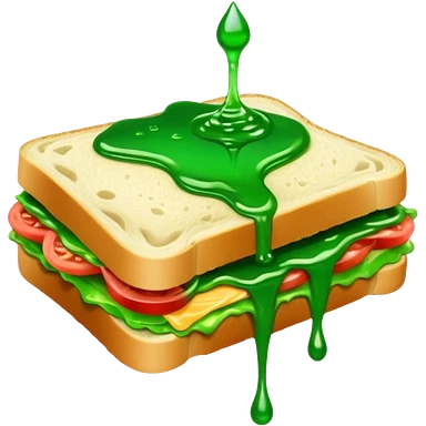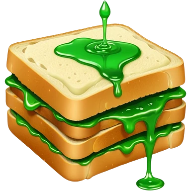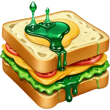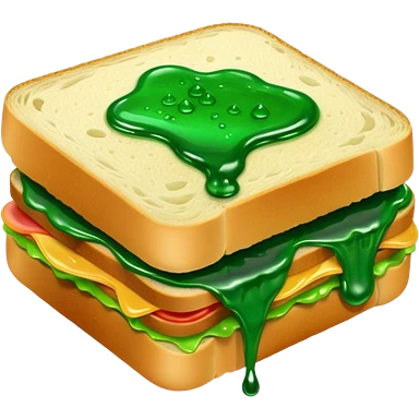 A sandwich with green goop syrup on top emoji