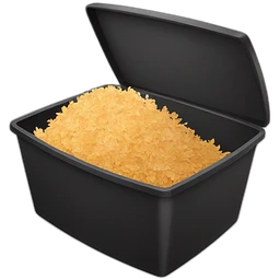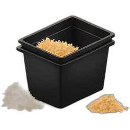 small plastic container with green dried herbal leaves which are clumped together emoji