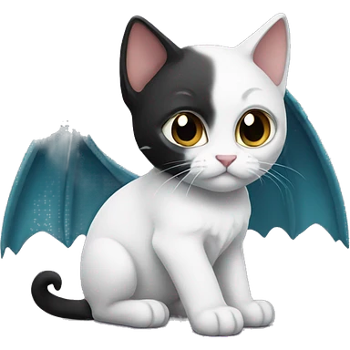 Small white and black kitten with dragon wings emoji