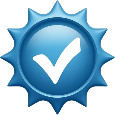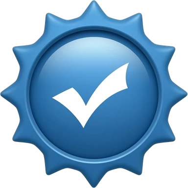 It is a small solid blue slightly rounded with slightly curved 12 small spikes seal containing a white tick as like In any Insta account has blue tick emoji