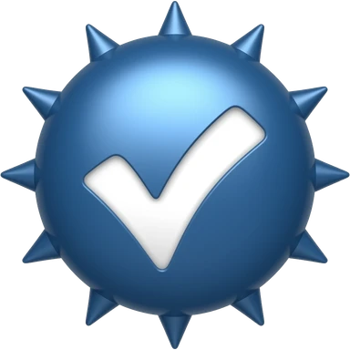 It is a small solid 2D without 3D highlight and shadow blue slightly curved 12 small spikes rounded seal containing a white tick. emoji