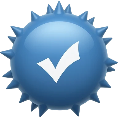 It is a small solid blue slightly rounded with slightly curved 12 small spikes seal containing a white tick as like In any Insta account has blur emoji