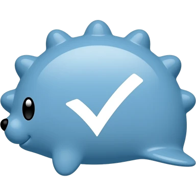 It is a small solid 2D without 3D highlight and shadow blue slightly curved 12 small spikes rounded seal containing a white tick with plane surface of emoji. emoji