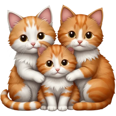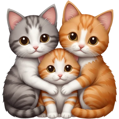 3 very small kittens cuddling together all different colours, the first one is grey and white, the second is ginger and white and the third is brown tabby and white emoji