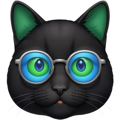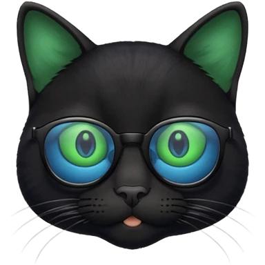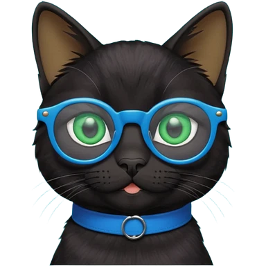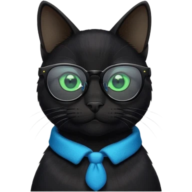 smart black cat in blue glasses emoji