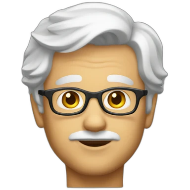 old english man, with glasses, grey hair, no moustache. wearing a white smart polo shirt with black buttons. emoji