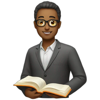 Smart, friendly looking emojis, they are sitting behind a book or laptop emoji