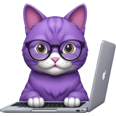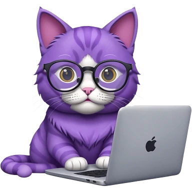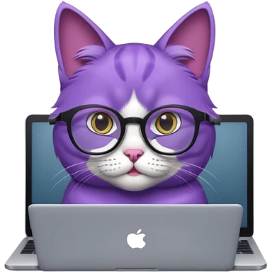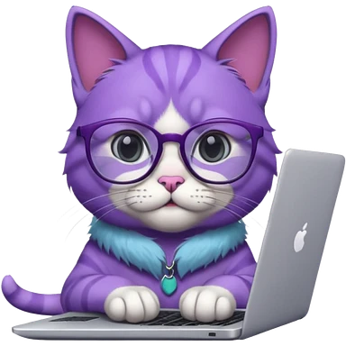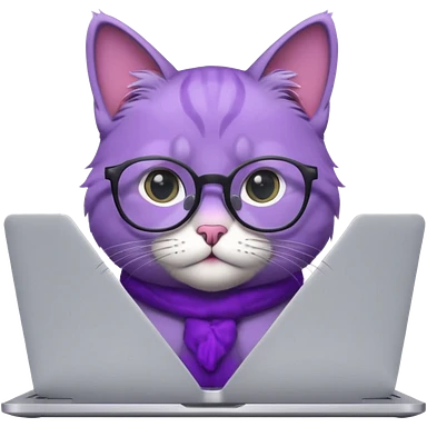 smart purple cat in glasses with laptop emoji | AI Emoji Generator