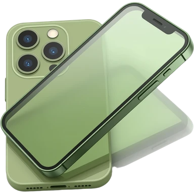 smartphone with a screen and a sleek bod The phone’s корпус (body) is designed in a soft olive-green color emoji