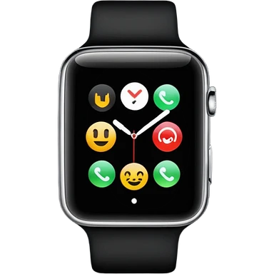 modern smartwatch, black with a vibrant screen display showing the time, a call icon, and a message icon emoji