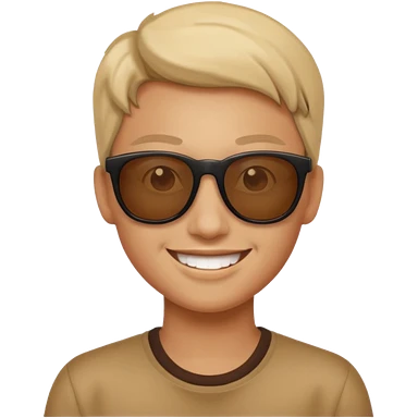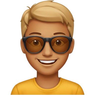 A 25 years old character that started a start-up company. He is joyful, with a small beard, trustworthy, smart, loving, with glasses, wearing a green t-shirt and brown pants. emoji