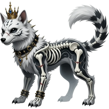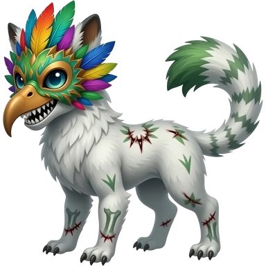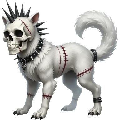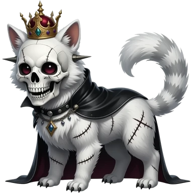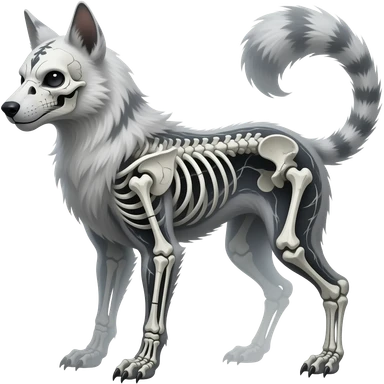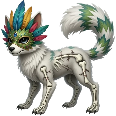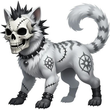 smexy skull-masked punky gothic bleak swampy white-skeletal gloomy dark pale albino foggy eldritch beautiful realistic edgy fantasy ghoul-like stitched vernid-sergal-fursona animal creature with a tufted tail full body with intricate markings emoji | AI Emoji Generator