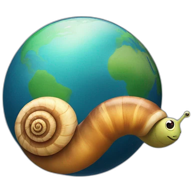 planet Earth with a cartoon smiling snail face with smiling eyes emoji