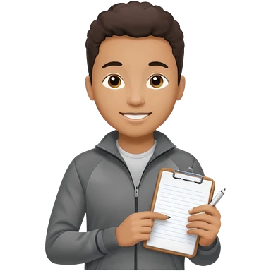 A young coach with a notepad, encouraging players with a confident smile. emoji