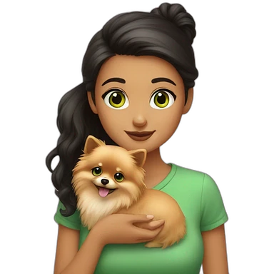 girl-with-green-eyes-dark-hair-petting-pomeranian emoji