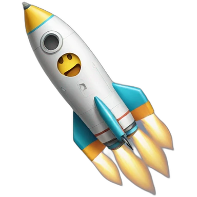 a man with closed eyes and a smile, dreaming of a rocket ship, thought bubble above head emoji