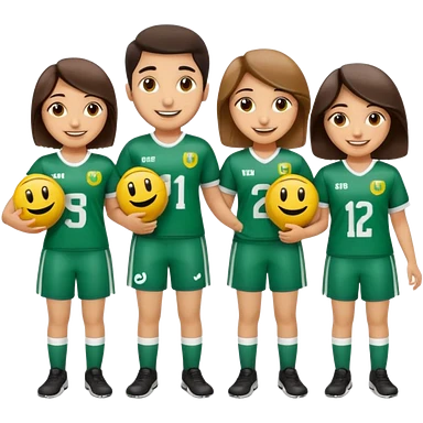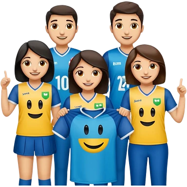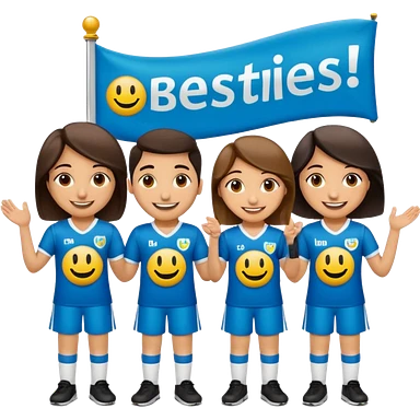 Make 5 decent characters include 4 girls and 1 boy and mentioned there names on there jersey ist husna, tuba, maleeha,alishba and boy Talha also smiley.creat a sign board and a besties off UOM and the sign board takes by boy in his hand emoji