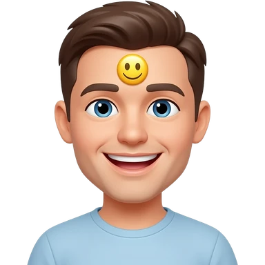 A person laughing with the angle of the emoji taken from their forehead a smiley face emoji