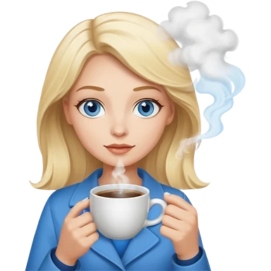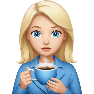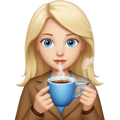 Smiley blonde girl with blue eyes with coffee emoji | AI Emoji Generator