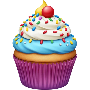 Vanilla Cupcake with white icing and colorful sprinkles emoji