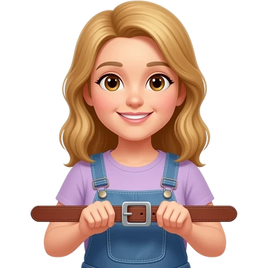 A woman holding a belt emoji