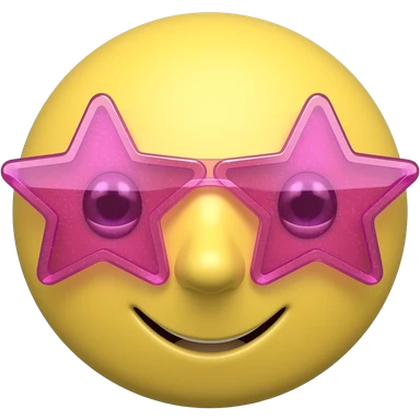 smiley face emoji with see through sunglasses star shapedand bright pink sparkley thin lips emoji | AI Emoji Generator