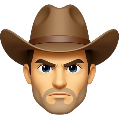 serious stern cowboy more simple, just the face, classic simple yellow smiley but a stern cowboy, emoji