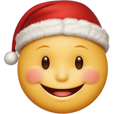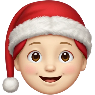 Smiley face smiles with closed eyes in a red Christmas hat emoji | AI Emoji Generator