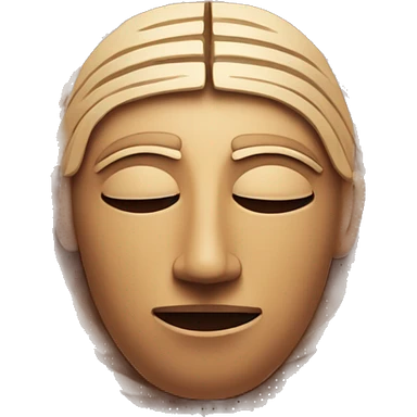 A human face based on Moche heads, with closed eyes, a soft smile, and simple geometric lines. Surrounded by spirals that symbolize knowledge. Colors in earthy tones. emoji