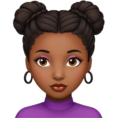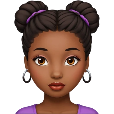 A black girl with edges and plump lips and long lashes with a bun in her hair and she looks like a baddie emoji