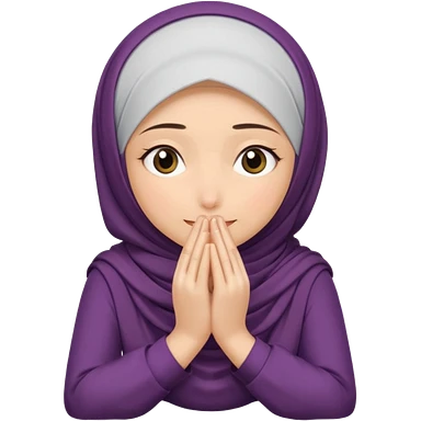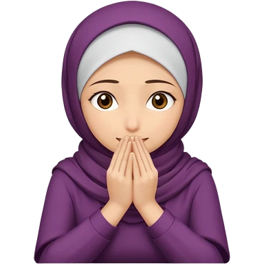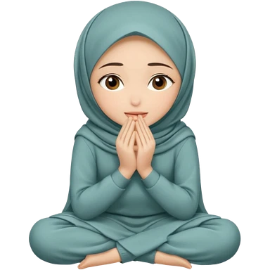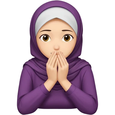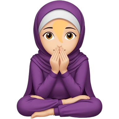 Hijabi girl sitting and hiding her face from her hands made into half open fists and completely covered her face emoji