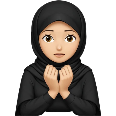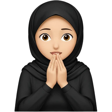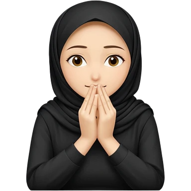 Hijabi girl sitting and hiding her face from her hands made into half open fists and completely covered her face.Her face is completely covered from his hands made in half open fists emoji