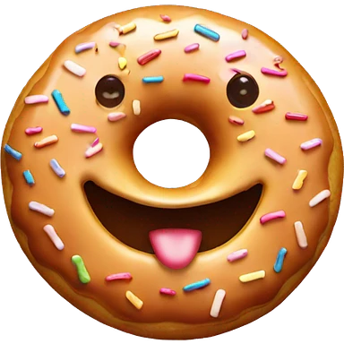 A happy donut with sprinkles in the shape of a smiley face emoji