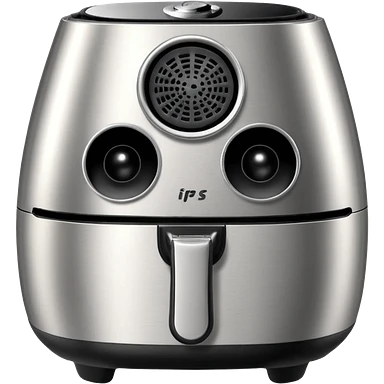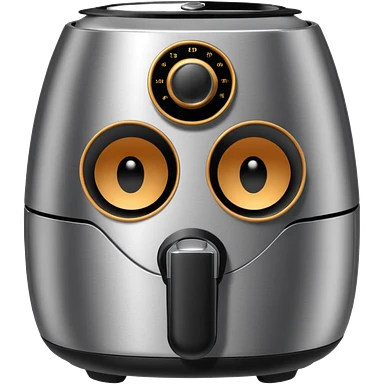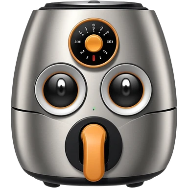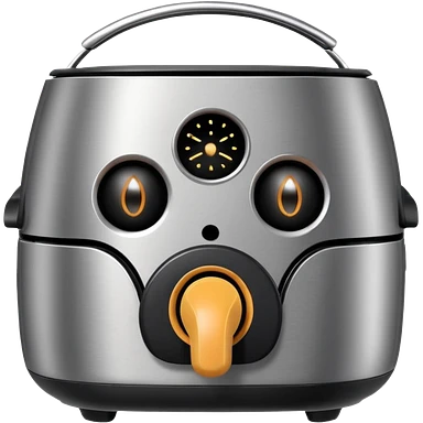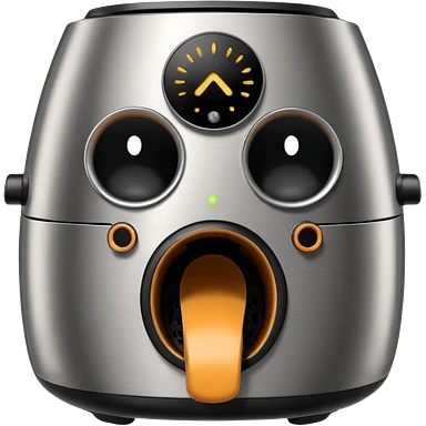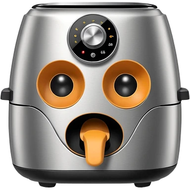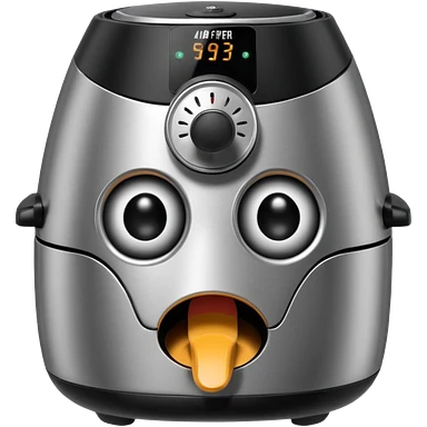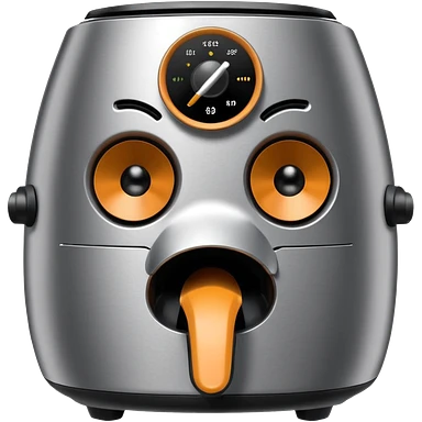 An air fryer with the knobs and handles made to look it's eyes, nose and mouth, hysterically crying with laughter emoji