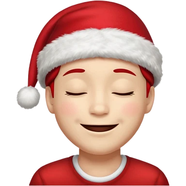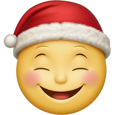 Smiley face smiles with closed eyes in a red Christmas hat emoji