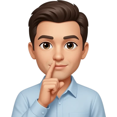 Une personne avec une mâchoire carré qui fais chut avec son doigt emoji