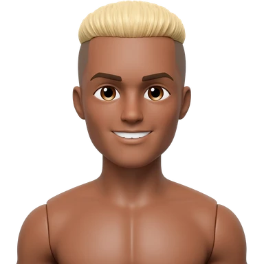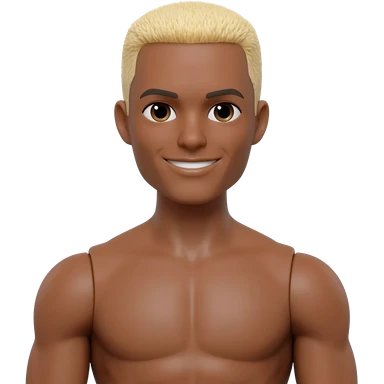 Brown skin Ken doll with buzz cut blonde short hair brown eyes slim fit with muscles, smiling emoji