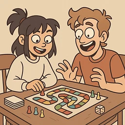 smiling asian girl and friend at a table with a boardgame emoji | AI Emoji Generator